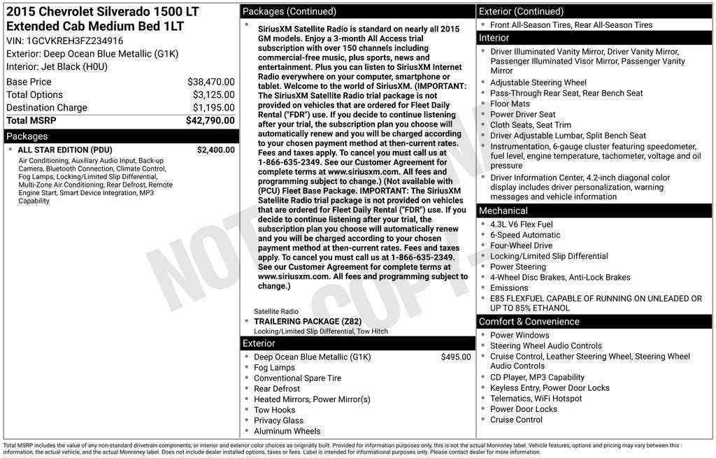 4D Double Cab 2015 Chevrolet Silverado 1500 LT LT1 4WD EcoTec3 4.3L V6 6-Speed Automatic Electronic with Overdrive