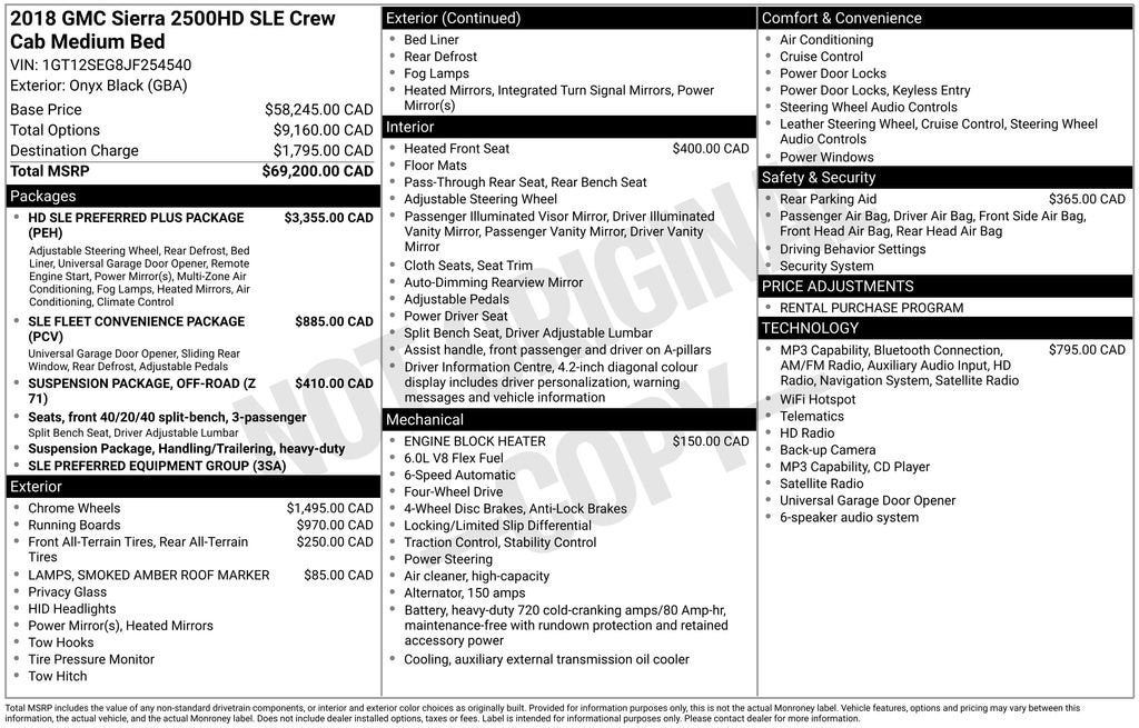 4D Crew Cab 2018 GMC Sierra 2500HD SLE 4WD 6.0L 8-Cylinder SFI OHV 6-Speed Automatic HD Electronic with Overdrive