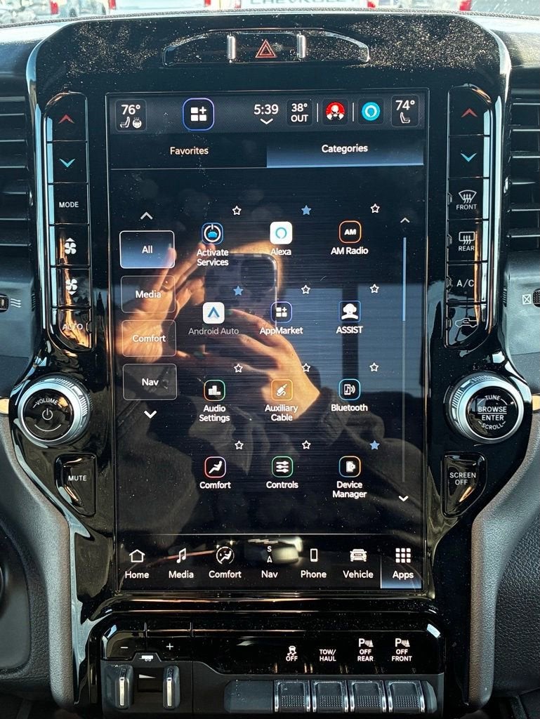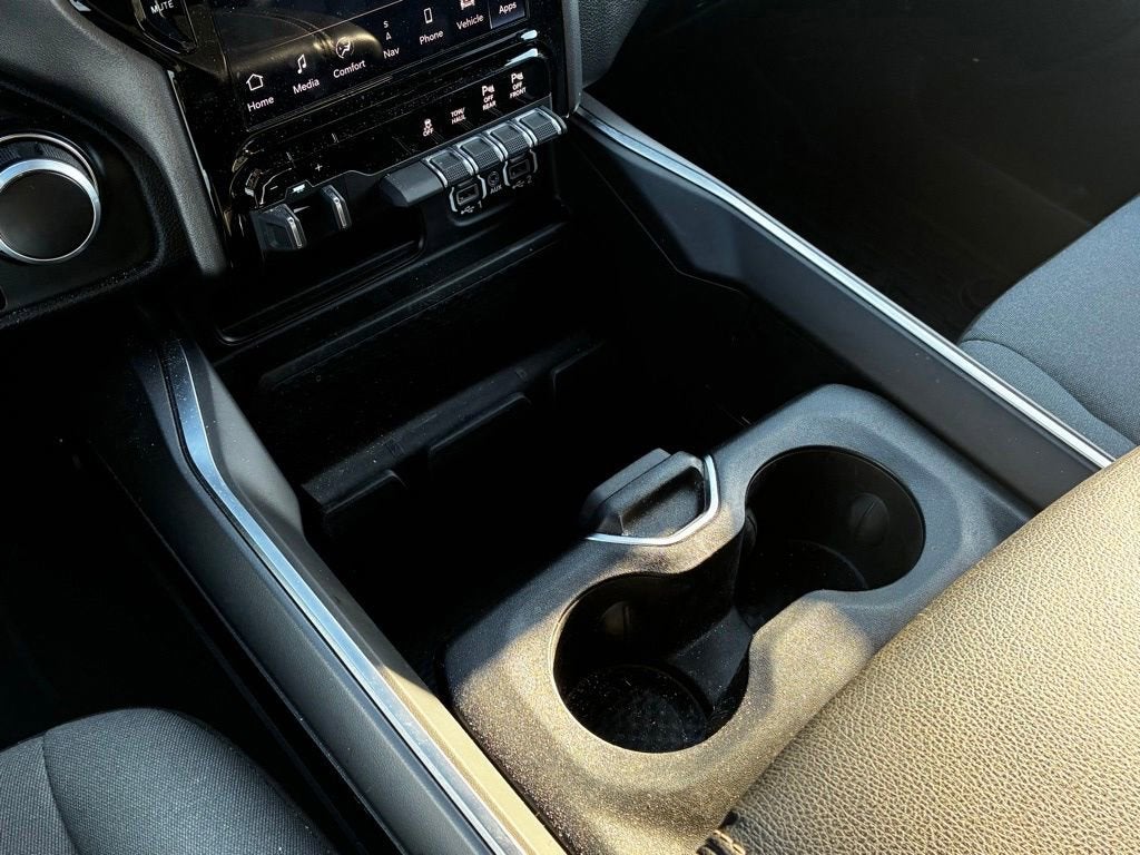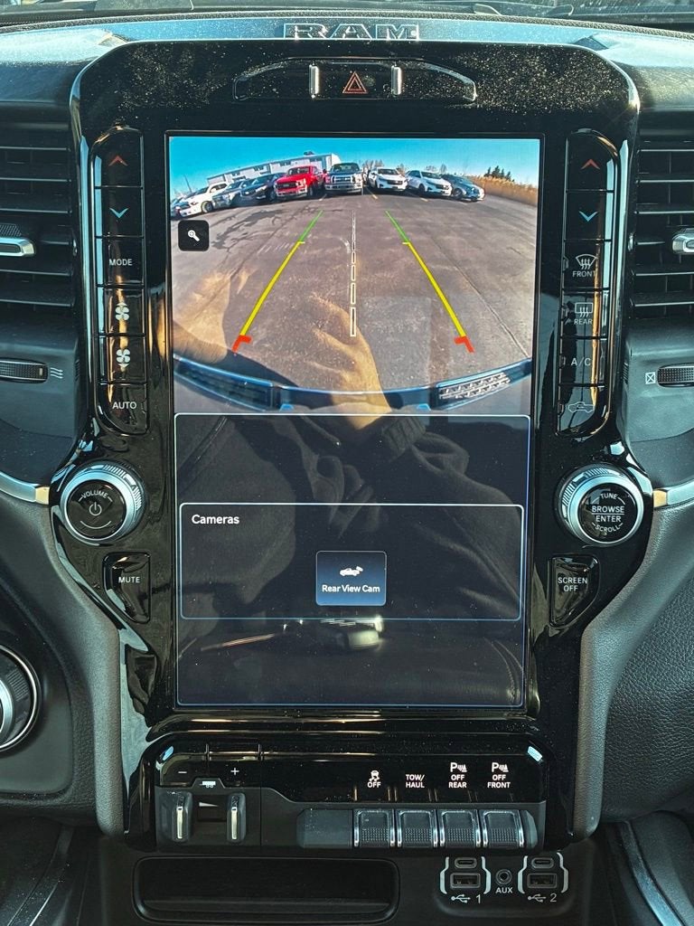 Indulge in the advanced features that set this Ram 1500 apart, including the Uconnect 5 Nav system with a massive 12-inch display, Apple CarPlay, and Android Auto integration. Stay connected with the 4G LTE Wi-Fi hotspot and enjoy the premium audio experience of the 9 amplified speakers with a subwoofer.